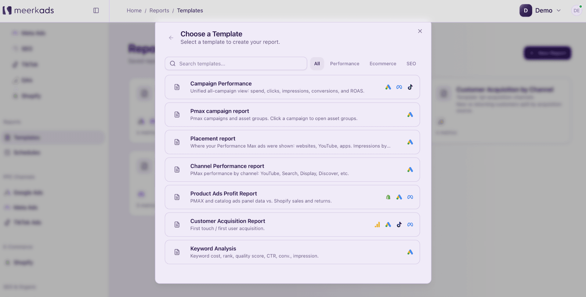 Meerkads generates ready-to-share performance reports from your live data across Google, Meta, TikTok, and Shopify, on your schedule, with your branding, without any manual work.