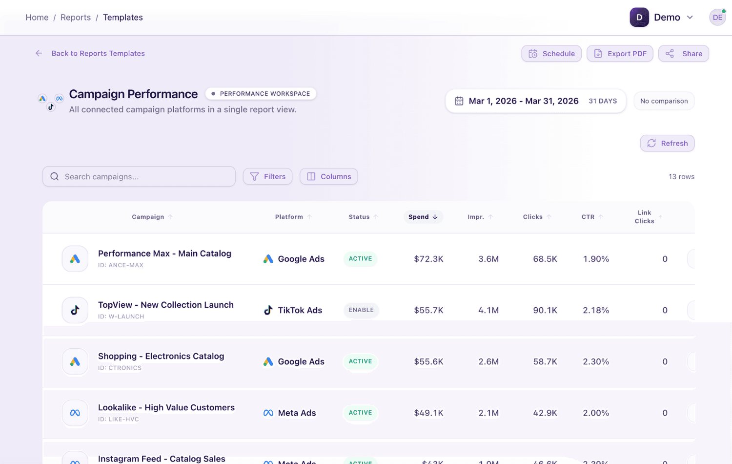 Building a scalable agency requires systematizing the parts of the business that currently depend on individual effort. For most performance agencies, that means reporting, campaign monitoring, and performance analysis, tasks that are time-consuming, difficult to delegate consistently, and rarely differentiated enough to justify the hours they consume. Meerkads replaces this manual layer with automated infrastructure that runs across every client account simultaneously. White-labeled reports generate and deliver on schedule without human involvement. Every account is monitored continuously for anomalies and performance changes. AI surfaces optimization opportunities across the portfolio so the team is always focused on the highest-impact work. For agency owners, the result is a business that delivers more consistent results, handles more clients with the same team, and builds the kind of systematic service delivery that creates long-term client retention and genuine enterprise value.